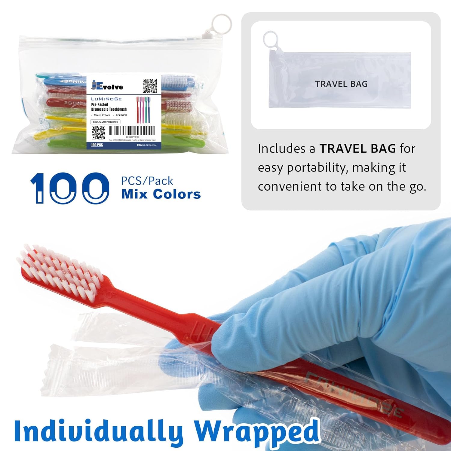 As Escovas de Dente Descartáveis Pré-Pasta JEVOLVE são a solução ideal para quem busca praticidade e eficiência nos cuidados orais. Com um pacote de 100 unidades, estas escovas foram desenvolvidas para atender às necessidades de dentistas, famílias, organizações e instituições que fornecem escovas a grandes grupos. Cada escova garante uma limpeza eficaz a qualquer hora e em qualquer lugar.