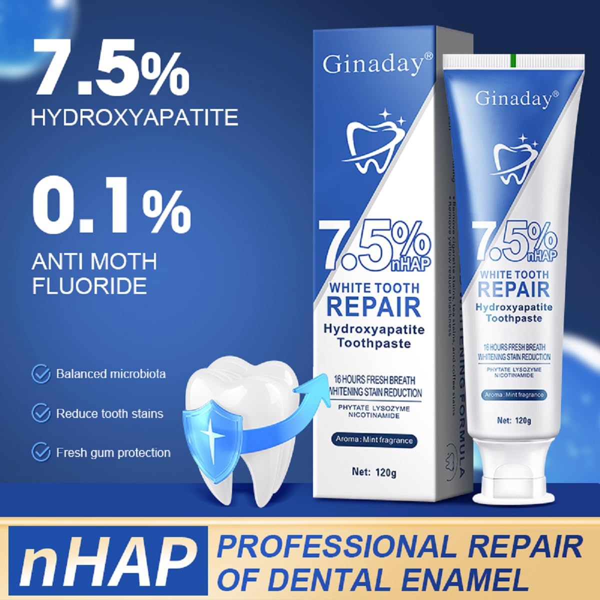 A tecnologia inovadora da hidroxiapatita penetra nas microfissuras do esmalte, promovendo uma cicatrização eficaz. Isso resulta não apenas em dentes mais saudáveis, mas também em um sorriso mais bonito. A fórmula é especialmente desenvolvida para dentes sensíveis, proporcionando alívio sem causar desconforto. O sabor suave de menta garante um frescor prolongado, tornando sua experiência de escovação agradável e revigorante.