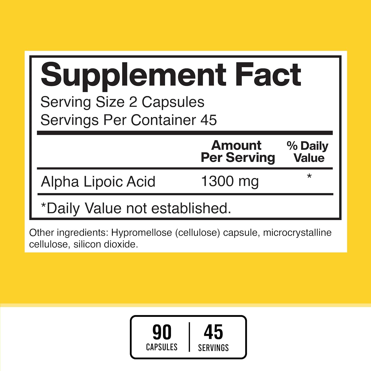Com 90 cápsulas fáceis de engolir em cada frasco, você obtém um suprimento para 45 dias, permitindo um suporte constante à sua saúde ao longo do tempo. A American Standard Supplements assegura a qualidade de seus produtos com ingredientes de fontes globais, fabricados nos EUA, em uma instalação registrada pela FDA e rigorosamente testados para garantir pureza e potência. Nossa prioridade é a sua saúde e satisfação, oferecendo um produto confiável e de alta qualidade.