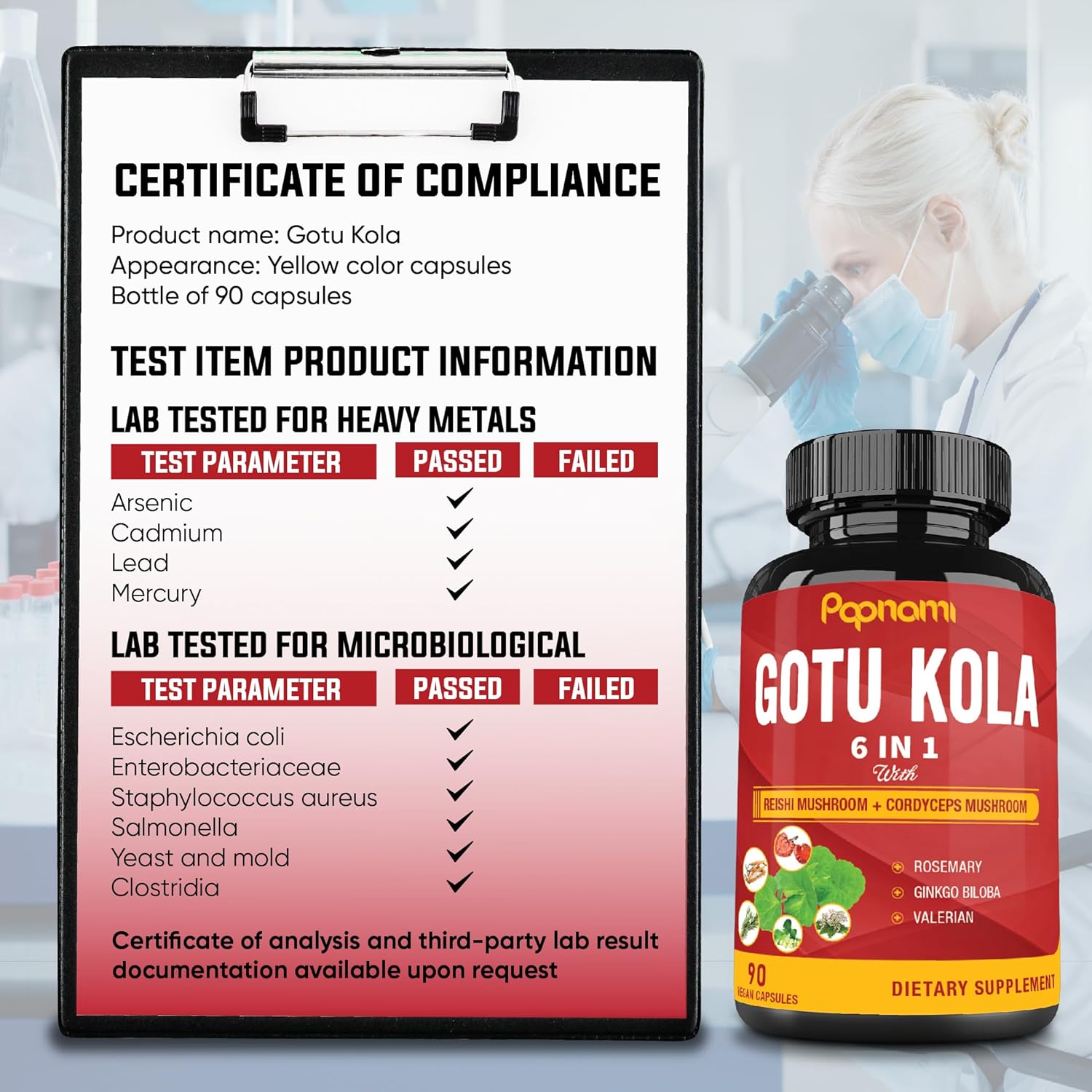 Inclui extrato de Gotu Kola, cogumelos Reishi e Cordyceps, Ginkgo Biloba, Alecrim e raiz de Valeriana.