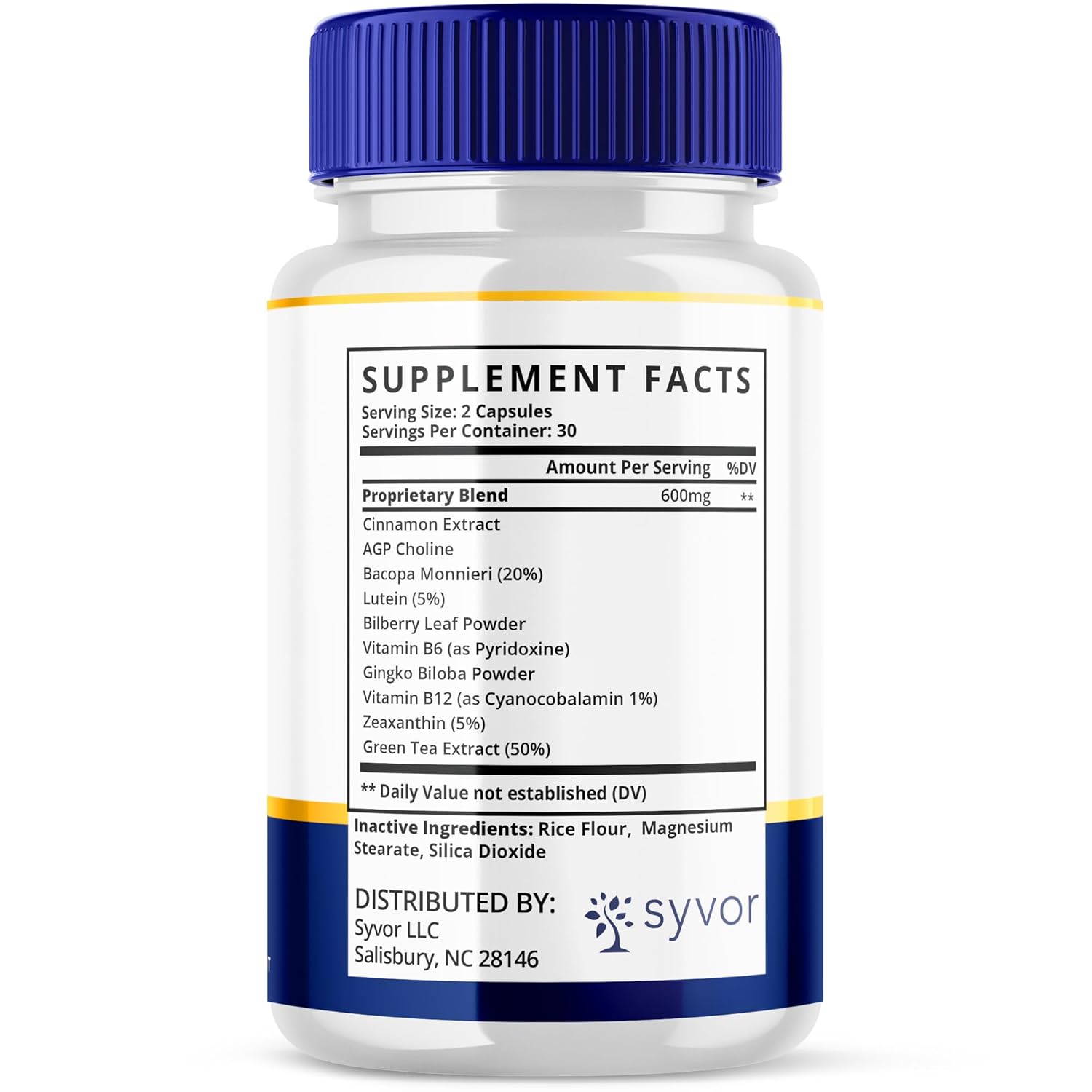 As cápsulas contêm uma mistura de ingredientes naturais focados em suporte cognitivo.