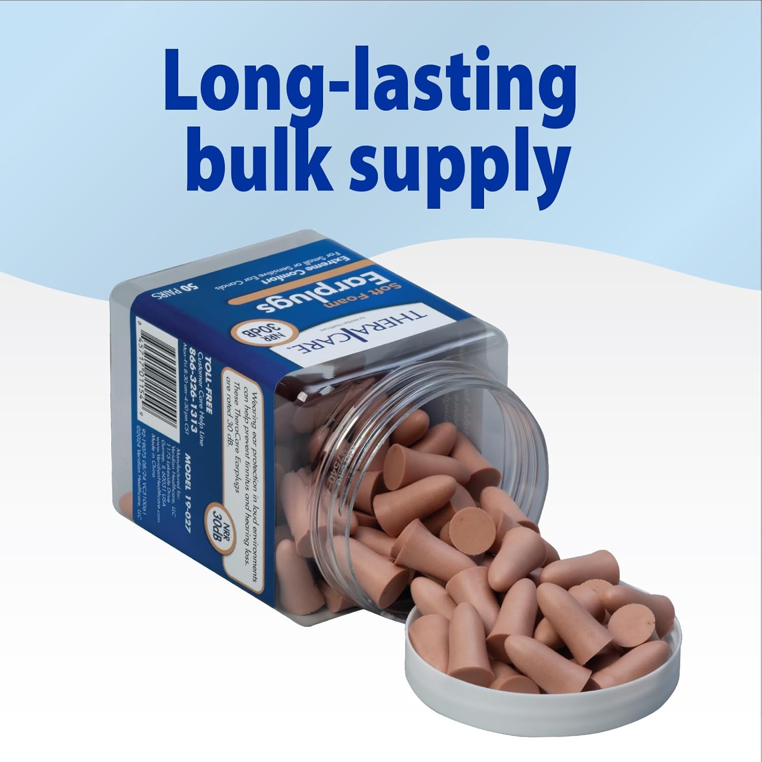 This 50-pair pack of TheraCare Soft Foam Earplugs is a decent bunch of earplugs at a decent price. The plugs are fine, They take time to spring back into shape after you compress them to put them in your ears, which means you can get them into just the right place. Maybe a little too much time. They do seem to do a decent job at noise attenuation. Not much to write about. They work!
