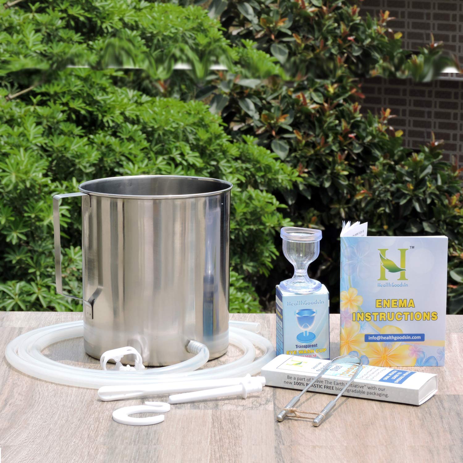 Stainless container is pretty thin and quality is not near as good as the other one we own. Also, there is a gasket used to seal the drain hole that must have some adhesive or chemical on it. When not in use we leave reverse osmosis water with a few tablespoons of hydrogen peroxide in the container and hose (to eliminate bacteria growth) and around the gasket gets slimy and sticky. Also, the tips that come with the unit are hard plastic and not comfortable whatsoever. I would not order again. Order the seeking health Pure Enema kit……WAY better.