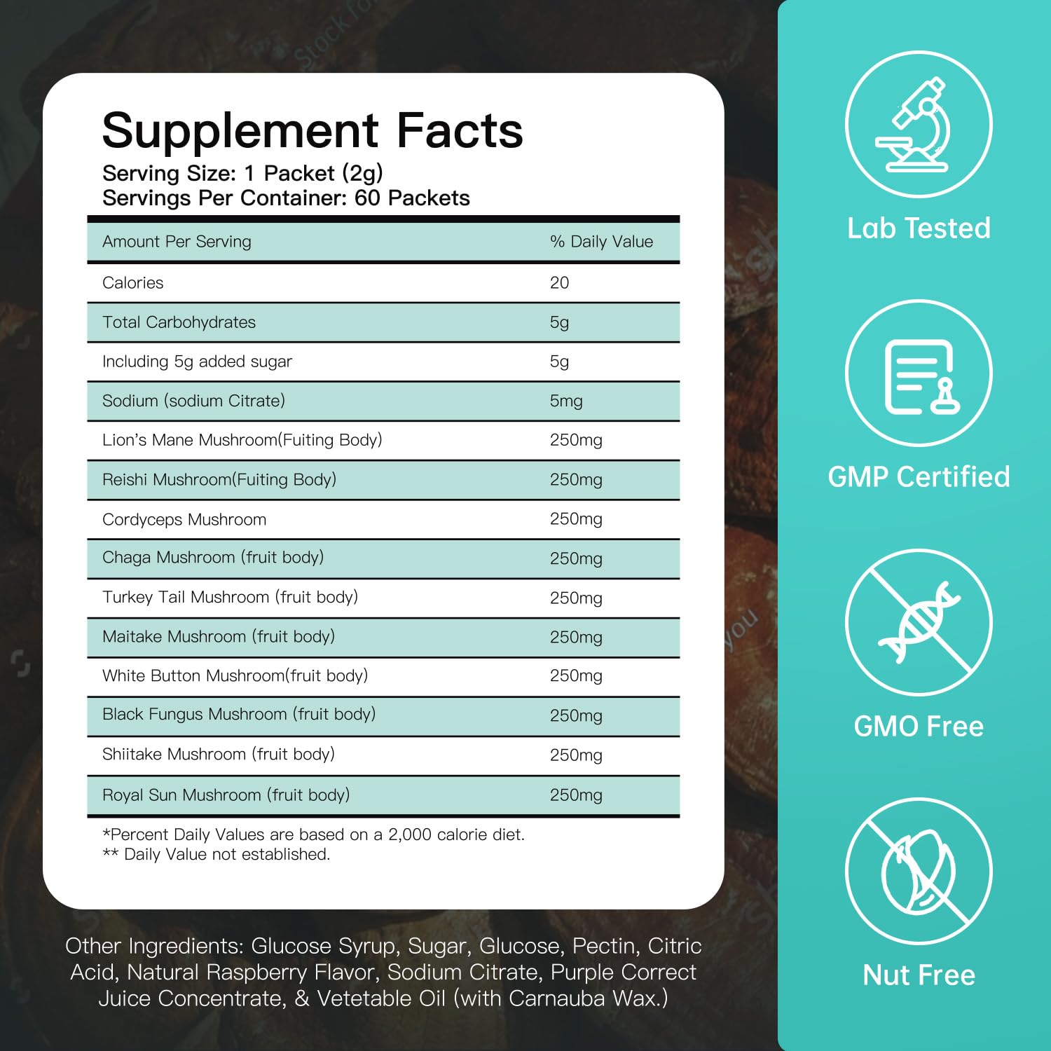 Descubra o poder dos nossos gomas de cogumelos, cuidadosamente formuladas com uma combinação potente de 10 cogumelos selvagens, incluindo o Cogumelo-de-leão, Chaga, Reishi e Cordyceps. Cada porção fornece extratos de alta qualidade, projetados para apoiar o seu bem-estar geral e a saúde digestiva. Essas gomas saborosas oferecem uma alternativa deliciosa aos suplementos tradicionais.