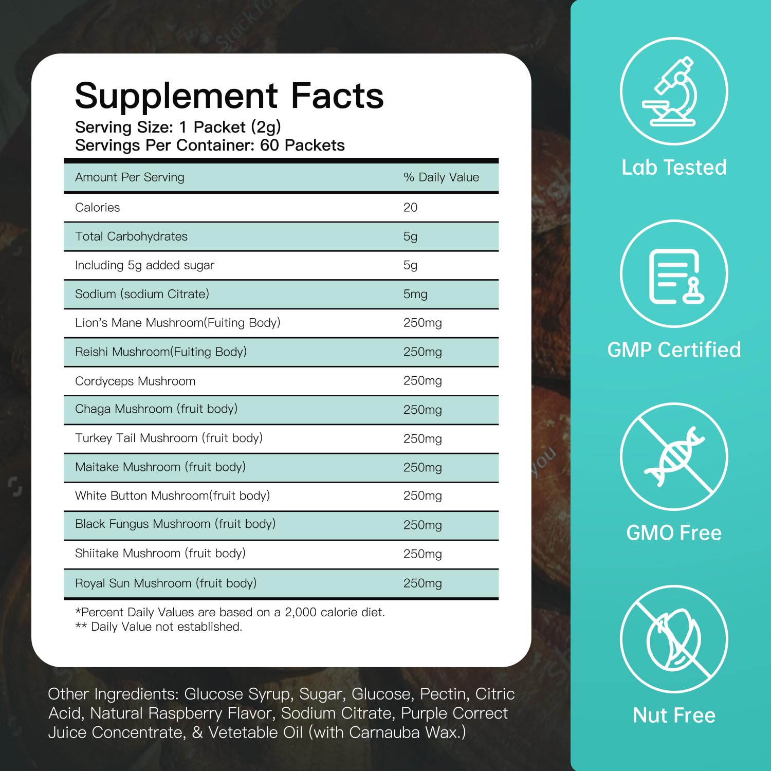 Descubra o poder dos Gummies de Cogumelo para Adultos, formulados com uma combinação exclusiva de 10 tipos de cogumelos premium: Hericium, Reishi, Cordyceps, Chaga, Turkey Tail, White Button, Black Fungus, Royal Sun, Shiitake e Black Fungus. Este suplemento inovador foi desenvolvido para aprimorar seu foco, memória e imunidade, além de proporcionar energia duradoura. Você estará sempre no seu melhor!