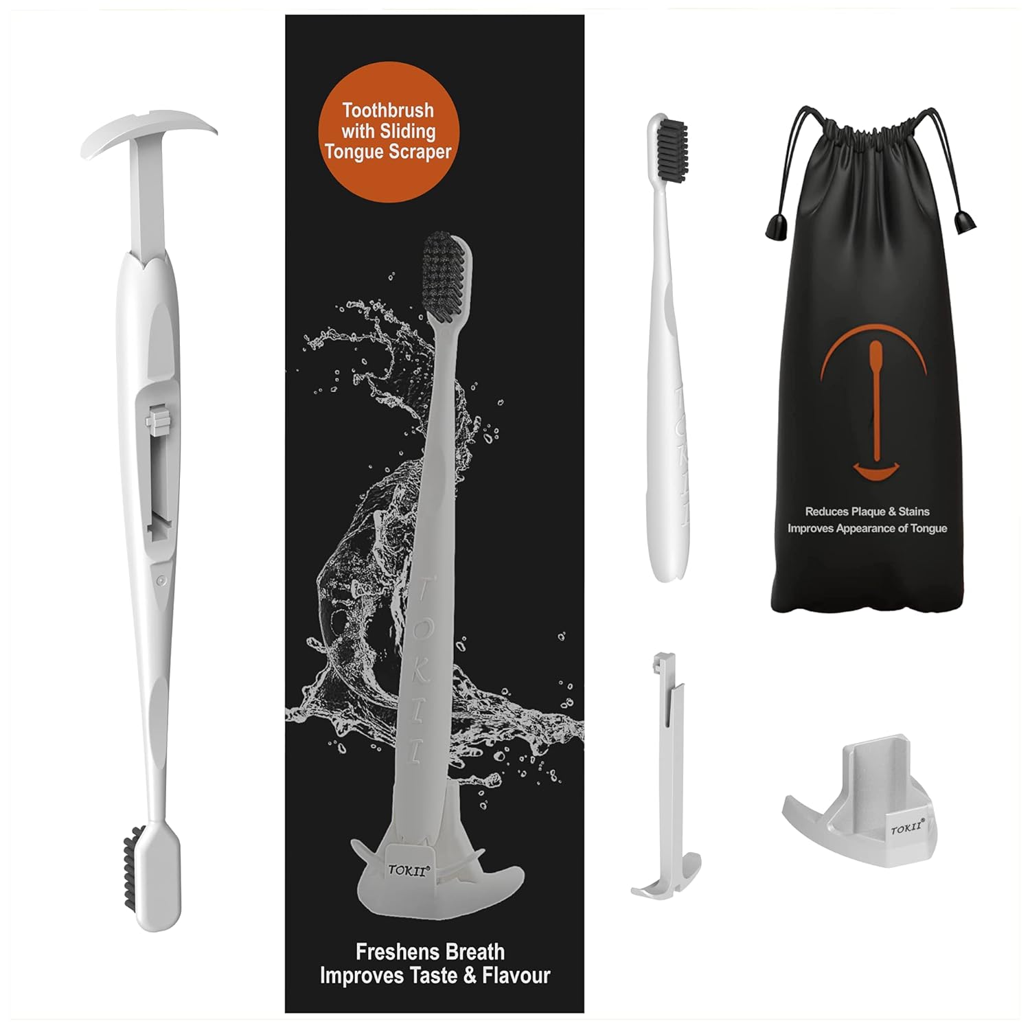4. No longer need to take a toothbrush and a tongue cleaner… it’s all in one and easy to use …. the Tokii comes with a waterproof travel bag